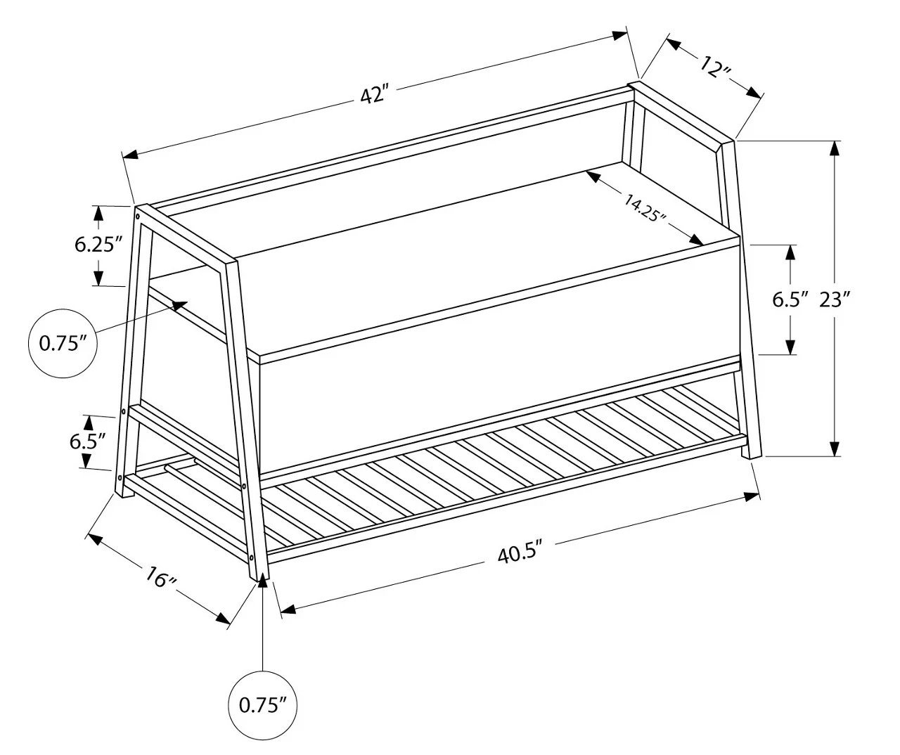 Keep your entryway or hallway clutter free with this versatile storage bench. The hinged top lifts to reveal a spacious interior storage cabinet as a shelf underneath neatly organizes shoes or other items. Conveniently sized and big in functionality, this storage bench in a dark taupe wood-look finish with a black metal frame is brimming with style and substance.