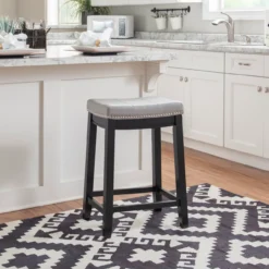Raleigh Gray Backless Upholstered Pub Stools, 2-Pack