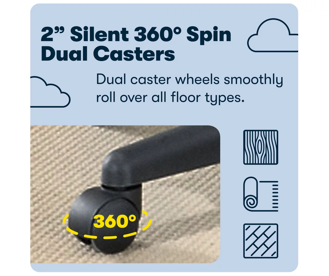 - Durable multi-surface dual caster wheels and heavy-duty, 5-star base