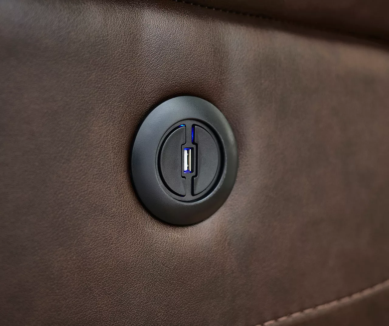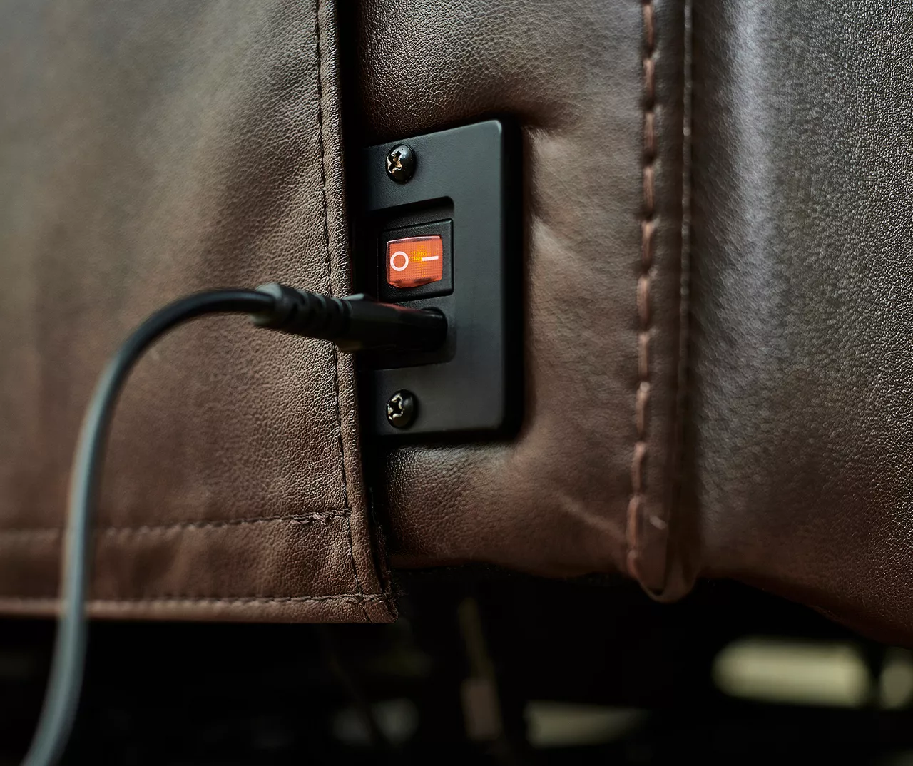 - Power reclining mechanisms raise and lower the 2 – recliner seats on each end
